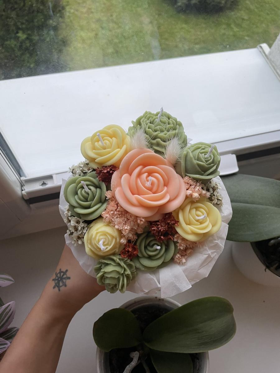 ráda bych Vám představila mou tvorbu krásných a voňavých kytic ze svíček ze 100% SOJOVÉHO vosku 🌹💐